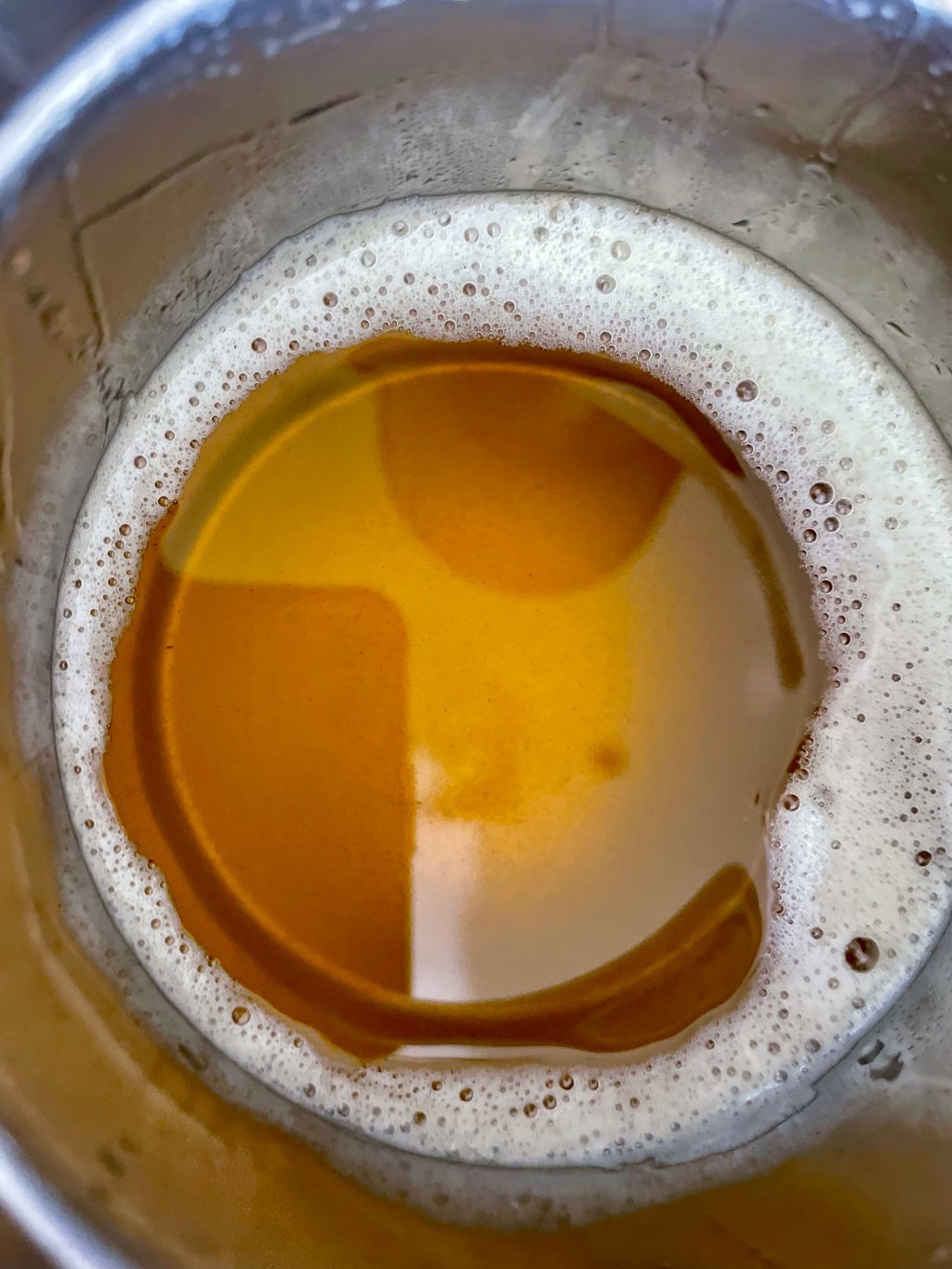 Gently blow on the surface. The ghee is ready when the a thin dry has formed on the surface of the butter. The liquid will be clear yellowish color and a nutty fragrant will emanate.